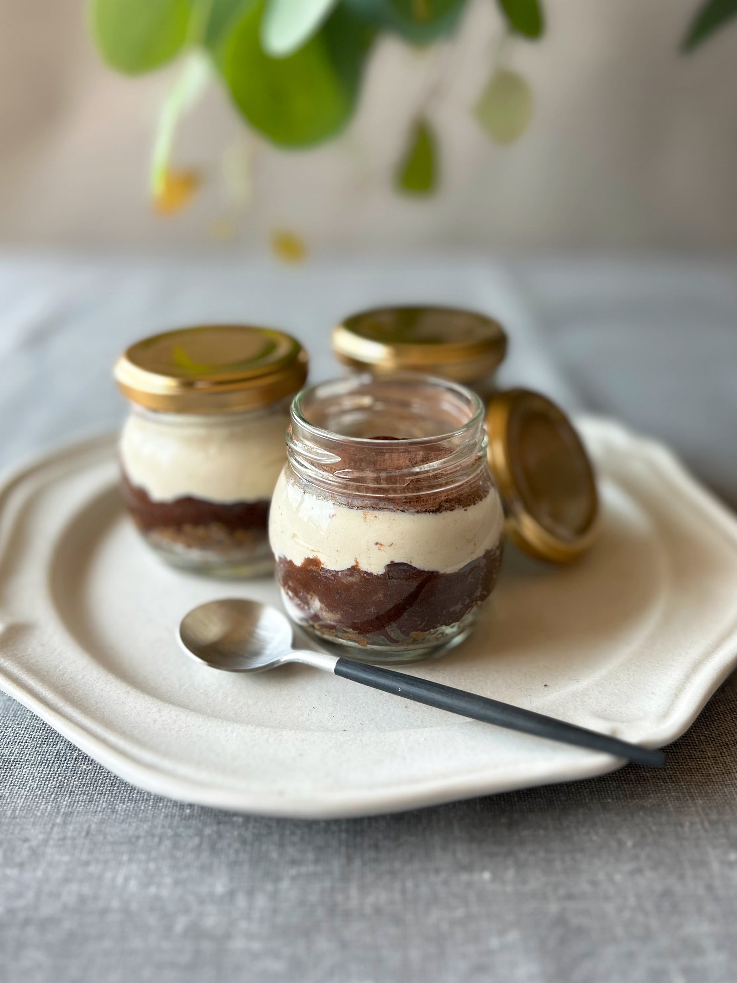 自家製あんこにヴィーガンマスカルポーネクリームを組合せたティラミスです